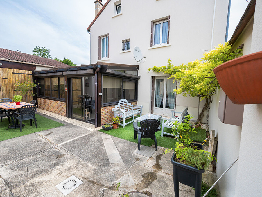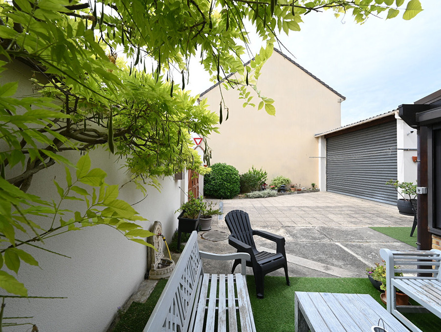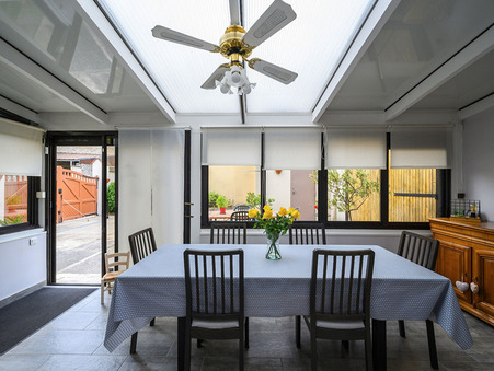 A proximité de la gare, au calme d'une grande cour close avec grand Garage/Box et Atelier, Magnifique Maison familiale en parfait état avec terrasse baignée de soleil. Cette propriété véritable havre de Paix et de sécurité est aménagée sur 2 étages se compose de :RDC : Entrée sous une belle véranda attenante à une grande cuisine et un salon ouvrant sur une terrasse, une Salle d'eau ainsi qu'un Wc séparé. Au 1er niveau : 2 Chambres séparées par un dégagement puis un escalier permettant l'accès au 2ème niveau, ouvrant sur une magnifique et grande chambre spacieuses.